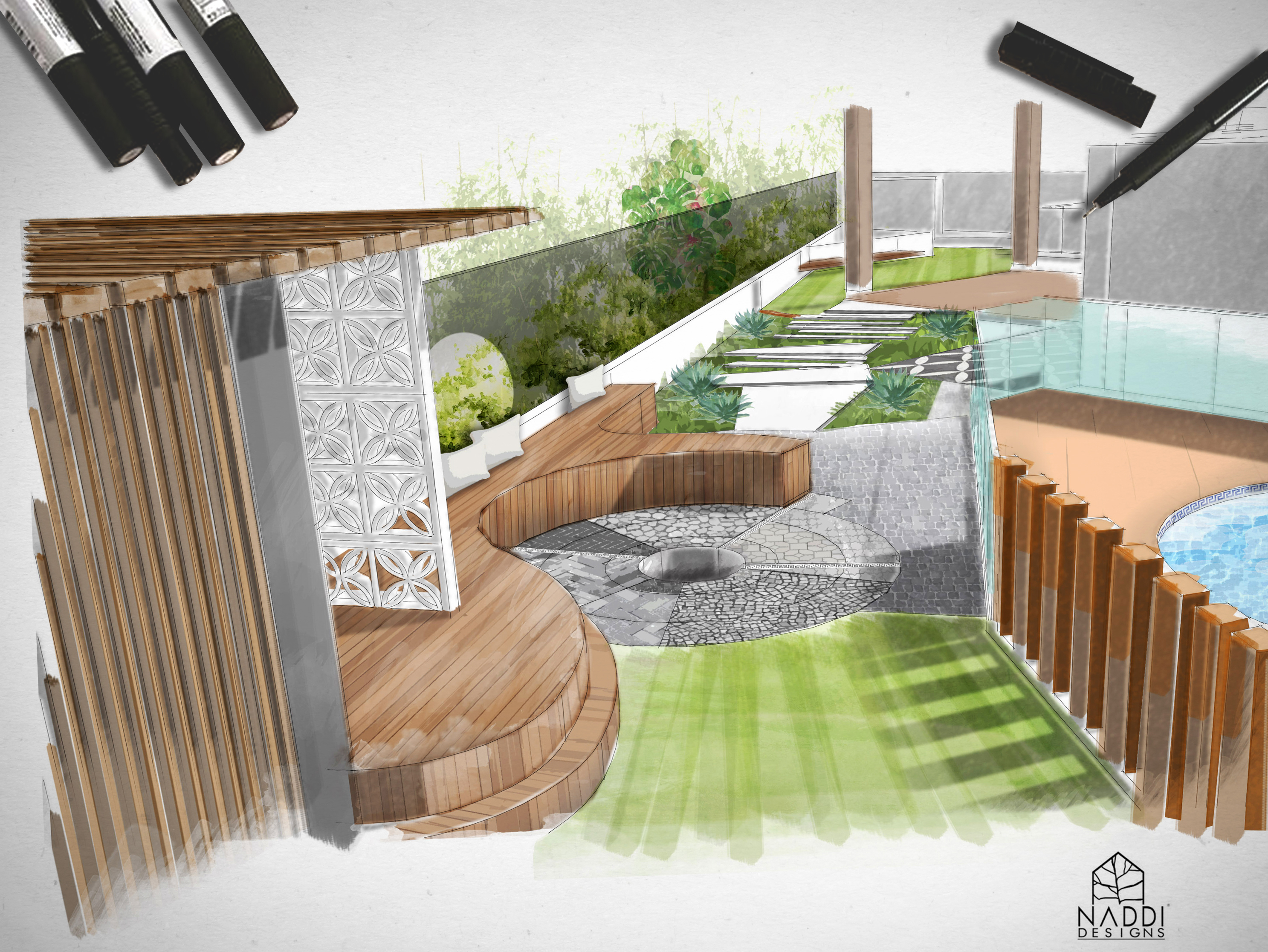 Georges Hall, NSW: Located in an otherwise austere suburban setting this backyard features a tranquil escape and place for relaxation and gathering. Large format pavers,…